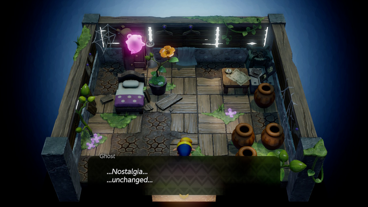 After reminiscing for awhile, the ghost will request that you take it back to its grave. Before doing so, check out the pots in the bottom-right corner of this room. Break them to find Secret Seashell #32. We want to take the ghost back now, so play Manbo's Mambo and warp to Manbo's Pond.