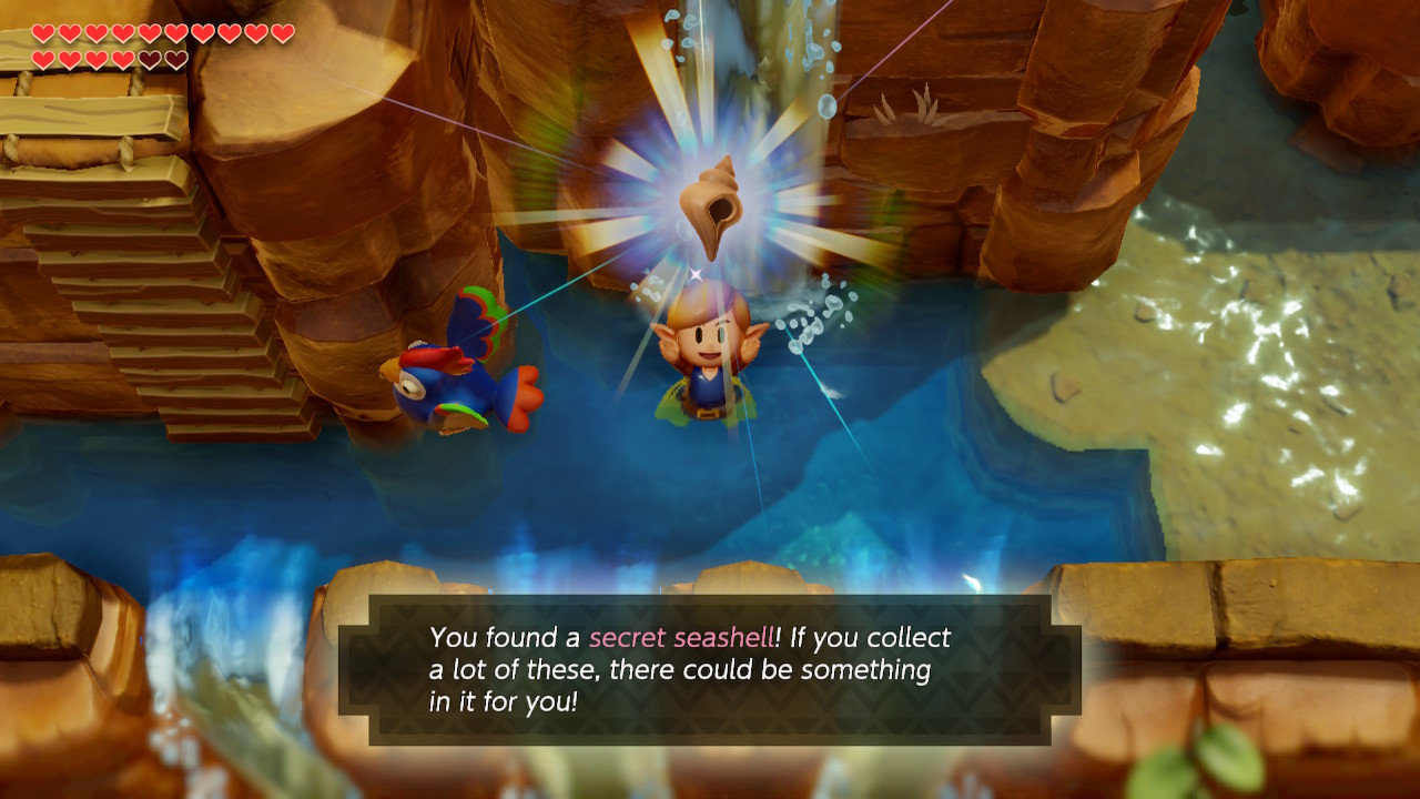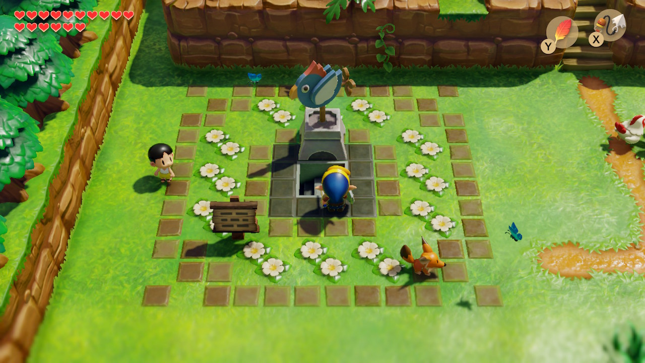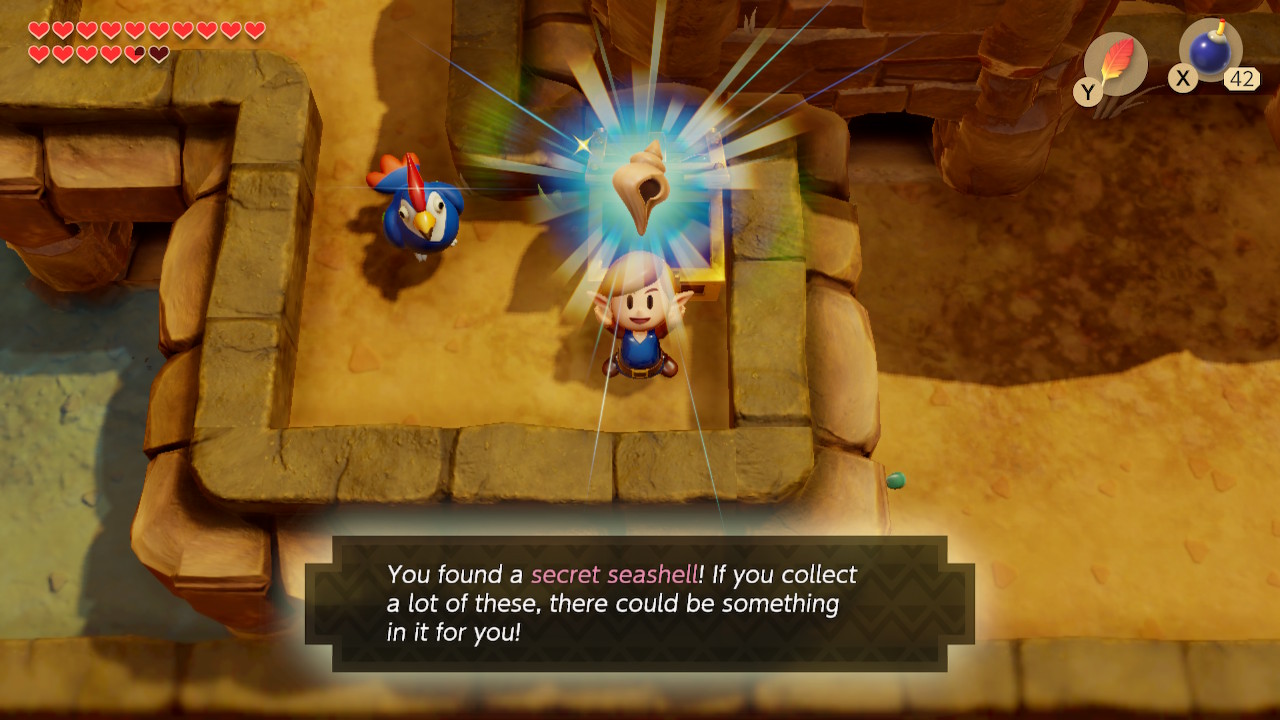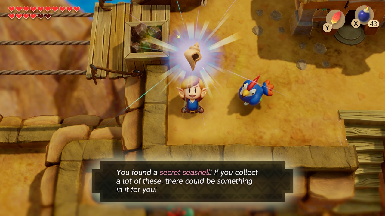 Head east from this building (inside is a man who will give you a hint that you can use your rooster to fly) and cross the bridge. You'll see three boulders in the corner here. Under the top-right you'll find Secret Seashell #46. Now, backtrack to the rooster building and enter the cave that you find down the stairs and to the south of it.