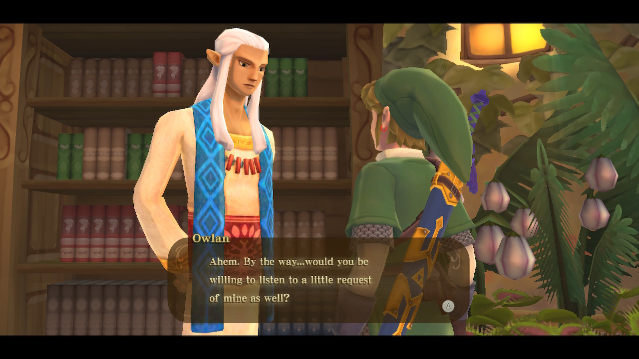 Use the nearby bird statue and head over to Skyloft. Enter the Knight Academy and speak with Instructor Owlan in his room on the second floor. He asks you to find a strange plant for him. Fi will register this to your dowsing ability. Exit the academy and take to the skies.