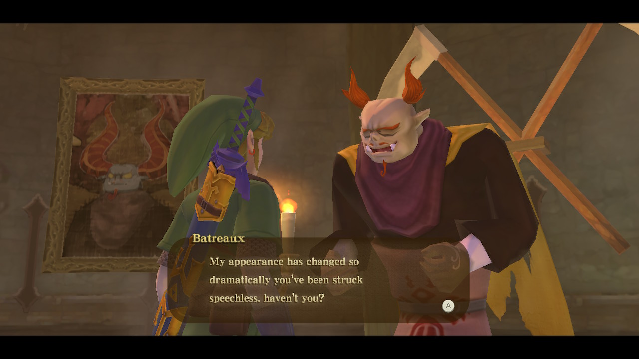 In addition to your reward, collecting all the Gratitude Crystals also allows Batreaux to transform into a human, albeit one that looks a lot like his monster self. Either way, he will be eternally grateful and this will actually prevent enemies from spawning in Skyloft at night.