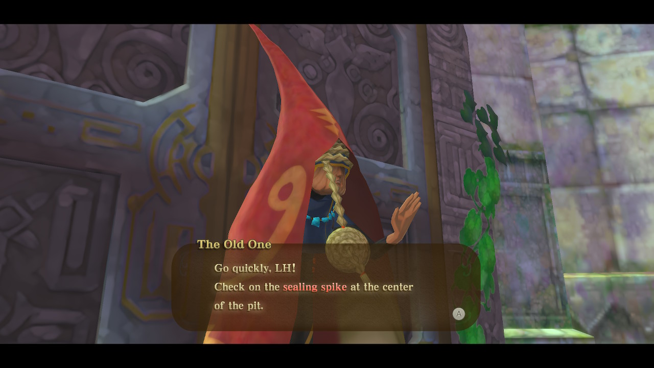 As you drop into the Sealed Grounds, you'll be joined by Groose in a rather interesting fashion. After the cutscene, Groose will run off and you should speak to Gorko. Then, head down the path to the west and enter the Sealed Temple.